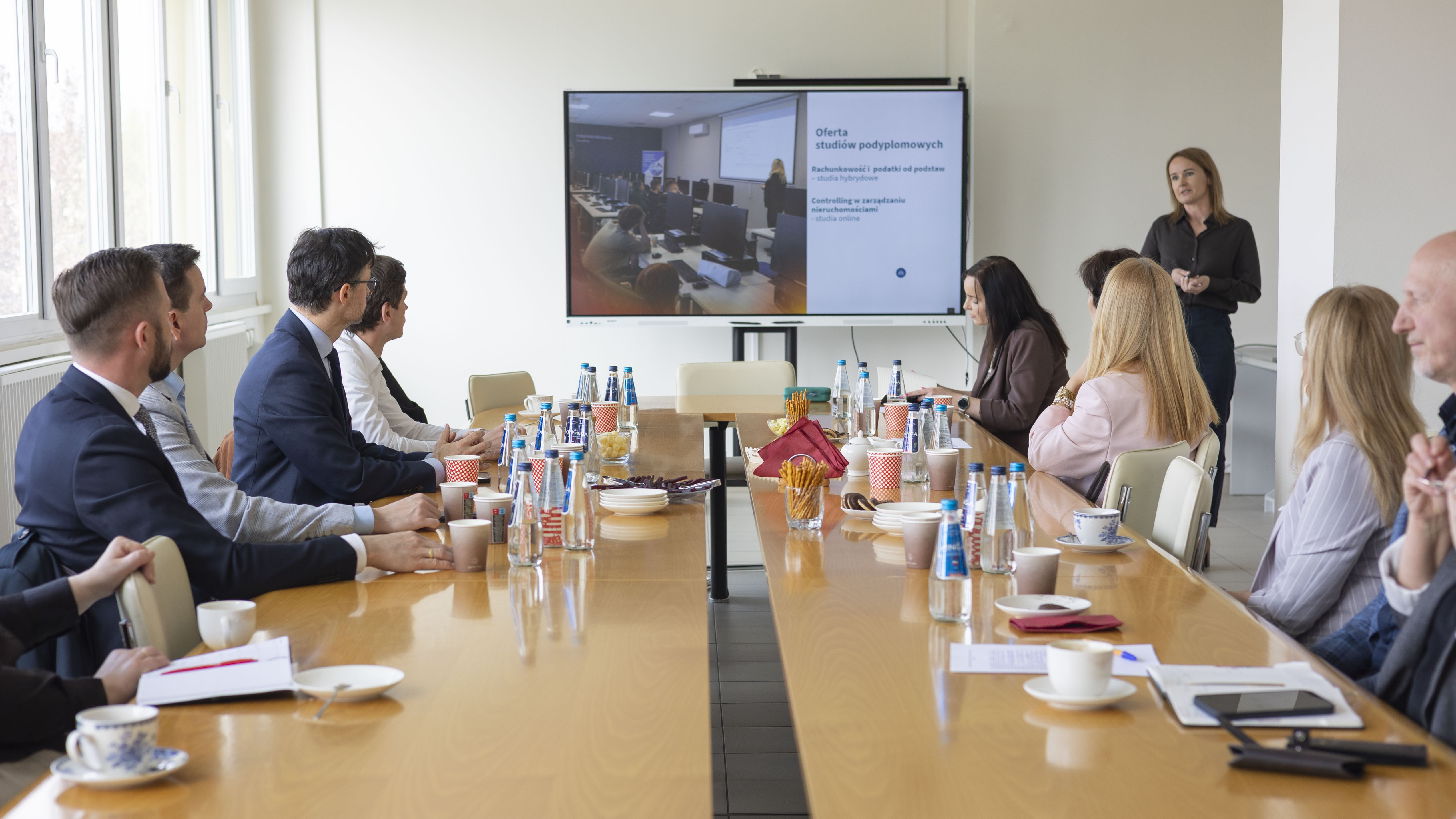20 kwietnia 2026 roku w Kolegium Nauk Ekonomicznych i Społecznych Politechniki Warszawskiej Filii w Płocku odbyło się spotkanie z przedstawicielami otoczenia społeczno-gospodarczego. Gości powitała Dyrektor KNEiS, dr hab. Magdalena Kludacz-Alessandri, prof. uczelni, podkreślając znaczenie stałego dialogu uczelni z biznesem i instytucjami regionu.
