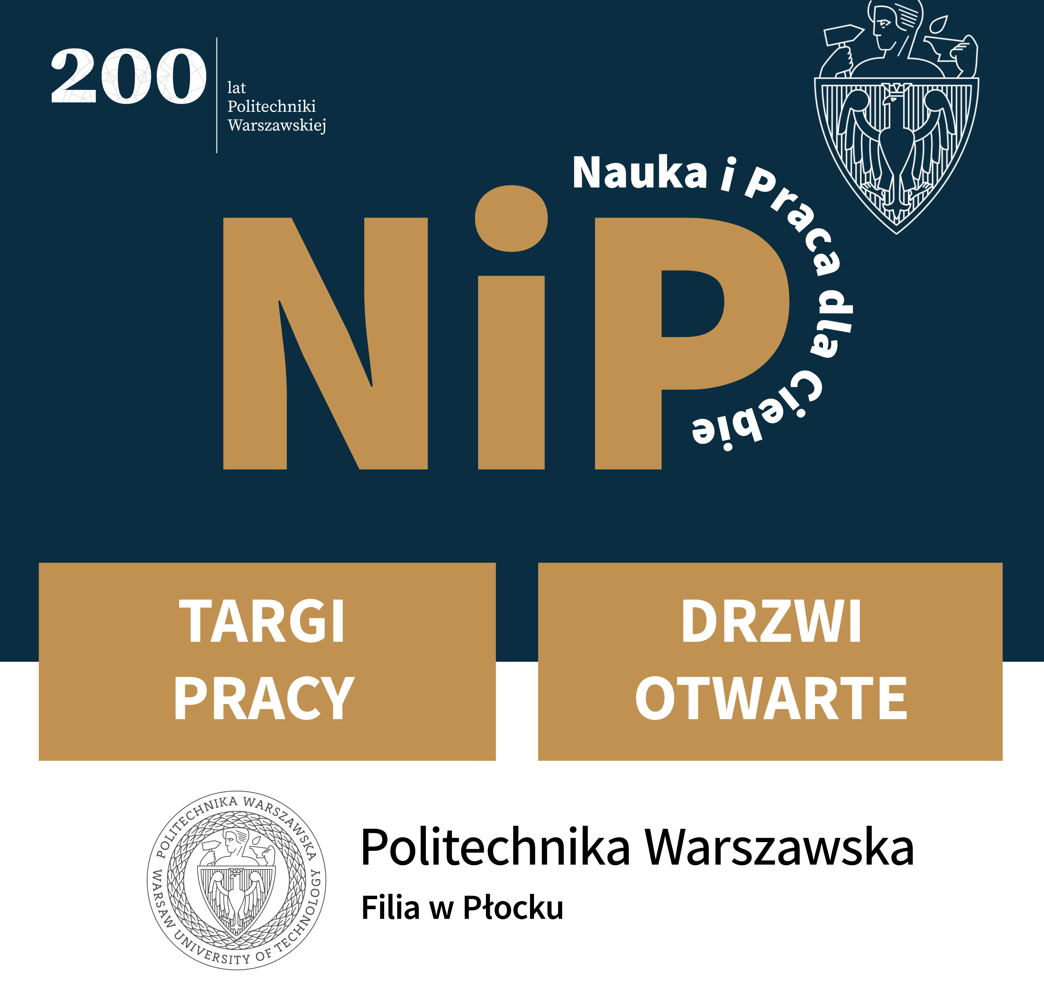Politechnika Warszawska Filia w Płocku zaprasza uczniów szkół średnich, studentów oraz absolwentów na wydarzenie „NiP – Nauka i Praca dla Ciebie”, które odbędzie się 25 lutego 2026 r. w godzinach 10:00–14:00.